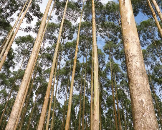 Originário da Oceania, o eucalipto é uma das espécies de exploração comercial que melhor se adaptou no Brasil. Resistente, precoce e de excelentes porte e produtividade, o eucalipto oferece uma madeira sólida e de ótima qualidade.