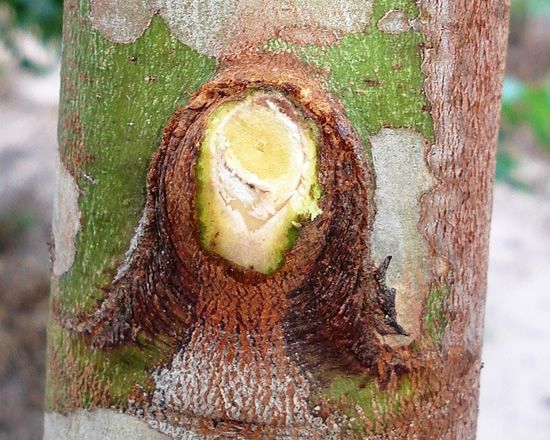 O gênero eucalyptus tem por característica crescimento rápido e formação de grande volume de galhos. Estes, na medida em que tomam diâmetro aliados ao desenvolvimento do fuste e da densidade, tendem a secar, produzindo resina ao redor da ponta interna, formando marcas escurecidas e apodrecimento. Este processo degenerativo torna o produto com baixa resistência mecânica e com alta perda de qualidade, resultando em grandes perdas com rachaduras, colapsos e torções no momento da industrialização.